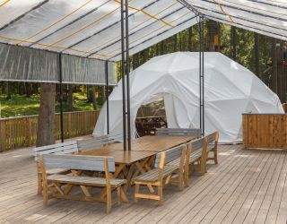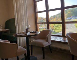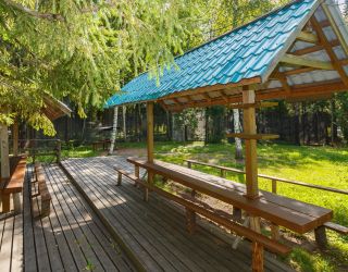 В гостинице работают буфет и ресторан «Межа», в меню – блюда традиционной сибирской кухни. Для небольших торжественных мероприятий предусмотрен банкетный зал. Для любителей мяса на гриле оборудованы мангальные зоны.